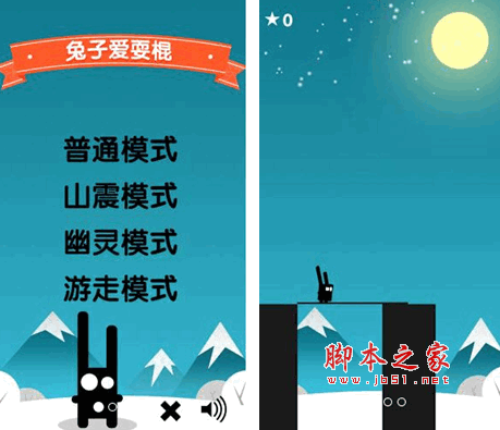 官方介绍:游戏里面提现了一种普通模式,三种不一样的新颖模式:山震模式、幽灵模式、游走模式。其中在山震模式中,对岸的山区会上下浮动,使您产生一种错觉,容易判断失误。所以这边一定要蛋定哦!看准了再走哈。在幽灵模式中,对岸的山丘会突然消失了,会很大程度上影响您的视觉,极度考验您的记忆能力和第6感官哈哈,刺激吧!接下来我们体验的是游走模式:山丘会不断的在左右移动,您要根据恰当的时间安排棍子的摆放,避免走不过去哦。OK,您已经感觉到了刺激了吧!赶紧带着兔子在恐怖的山丘耍棍吧!期待您更高的记录!