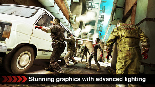 游戏评测:游戏中那么你会看到地上的积水有全动态的波纹、街道里纷纷飘落的树叶、阴暗角落里怔怔升起的水雾、又或者是漂浮在空气中那种真实的颗粒感,游戏中的枪械设定全部来自于真实世界,武器的声音和表现也同样让玩家感到真实,不过从实际表现来看,连射型武器明显更加威猛,而喷子或者左轮手枪之类的东东,单发威力虽然不错,但是差劲的穿透效果, 估计很少有人会选择它们,死亡扳机的流程进行方式是关卡形式的,可以总结为三个类型,第一是扫荡型的关卡,玩家只要把场景内一定数量的丧尸消灭即可。第二种是玩家从A地出发,然后在B地取得物品,最后返回A地逃生!第三种也是最为困难的一种,玩家要同时保护两个或者多个目标不被丧尸摧毁,保护物都是有HP设定的,经常遭受攻击为0时,那怕只是几个保护目标中的一个被摧毁,游戏也随即结束了