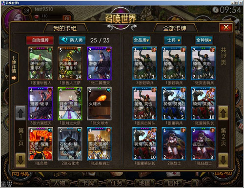 卡牌:游戏的核心功能,在这里组建卡牌,战斗所以的卡牌组是在这里形成的。