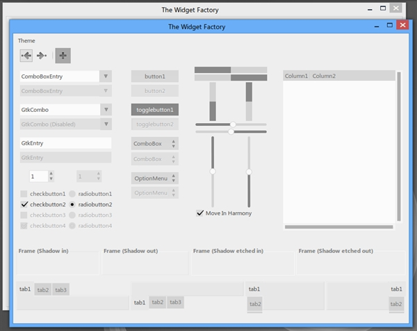 Windows 8 Modern UI (Metro)主题支持GTK、metecity.前者支持GTK3、GTK2,最新版本v0.2,重写了GTK3部分,并增加了theme.index索引文件,后者支持全部Windows 8 16种颜色,最新版本v1.2.